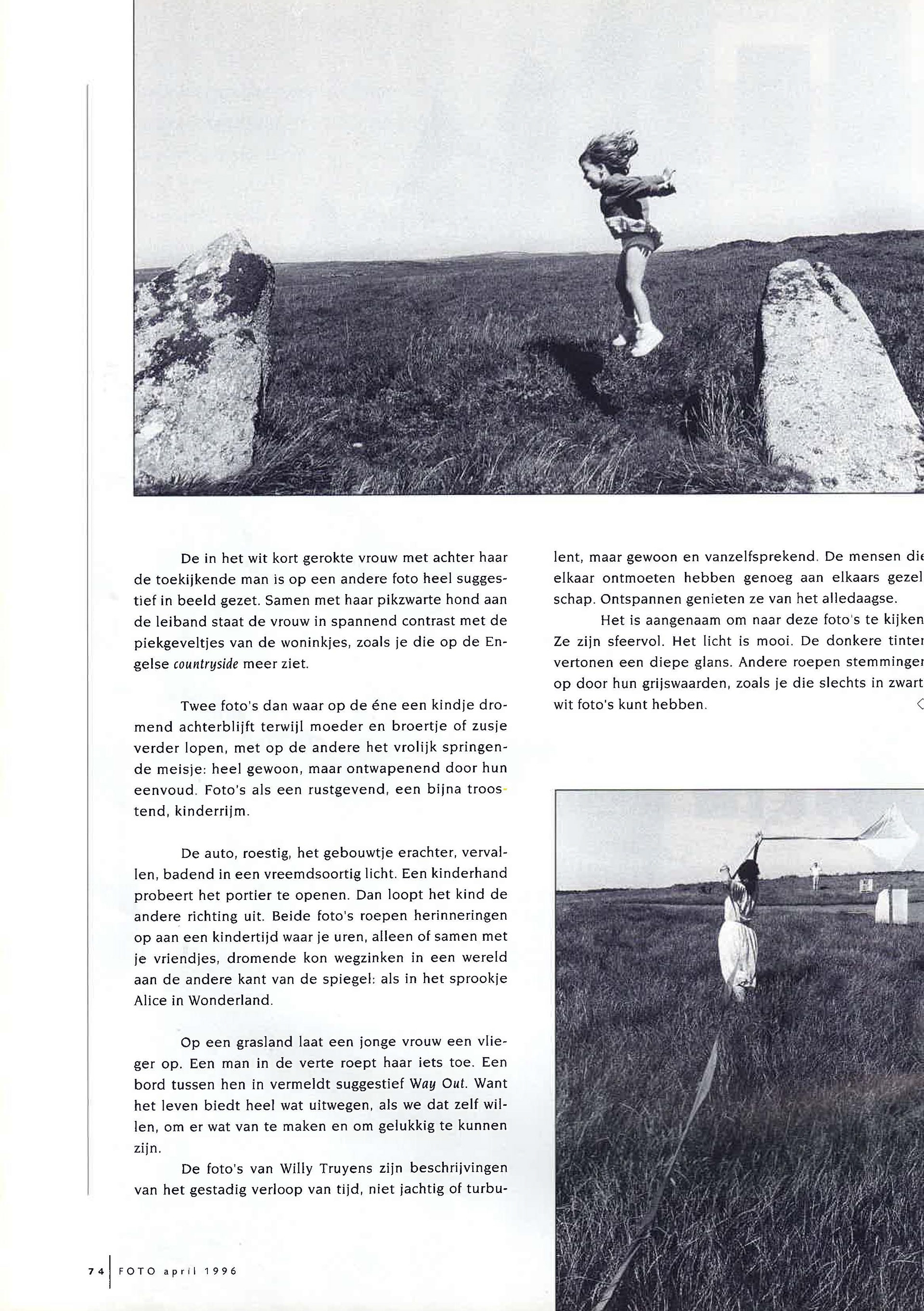Willy Truyens' photographs are descriptions of the steady passage of time, not hectic or turbulent, but ordinary and natural. The people who meet are content with each other's company. Relaxed, they enjoy the everyday.